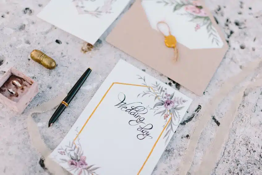 Pour rendre la carte encore plus unique, vous pouvez agrémenter l’intérieur d’une jolie citation ou d’un poème qui a une signification pour vous. Des paroles émouvantes sur le mariage, l’amour ou l’amitié apporteront de la profondeur. Vous pouvez puiser votre inspiration dans la littérature, la chanson ou le cinéma. N’hésitez pas à calligraphier vous-même le texte pour lui donner encore plus de charme.