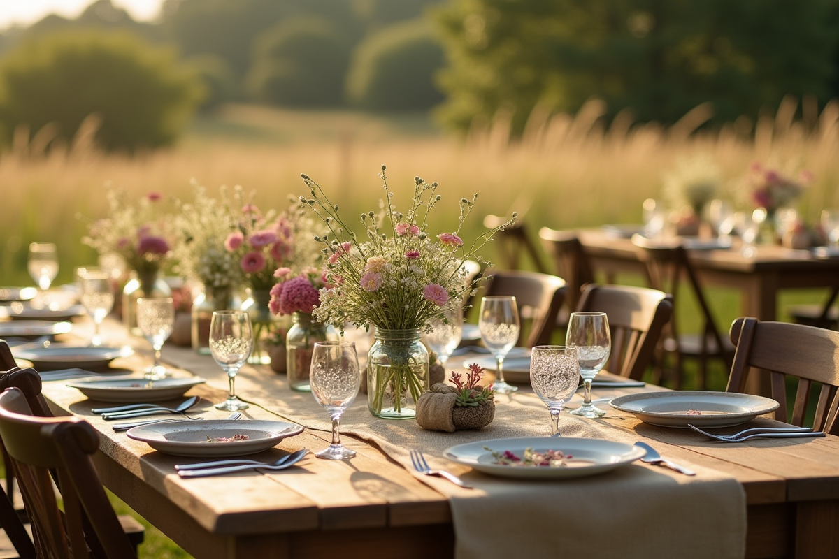 Un mariage rustique évoque la simplicité et l'authenticité de la campagne, avec des matériaux naturels et des touches vintage. Imaginez des tables en bois…