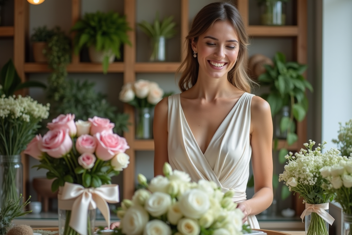 - Thème : champêtre, urbain, romantique, minimaliste… chaque univers appelle son style de bouquets.